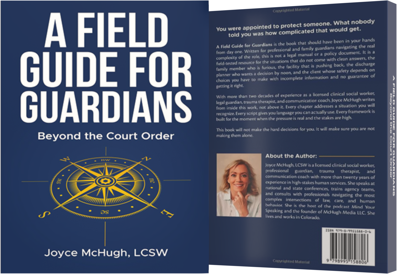 Hi, I'm Joyce McHugh, LCSW. I have spent twenty years working as a professional guardian and licensed clinical social worker in some of the most emotionally charged situations you can imagine. Broken systems, volatile families, life and death decisions, and rooms where everyone was certain they were right.